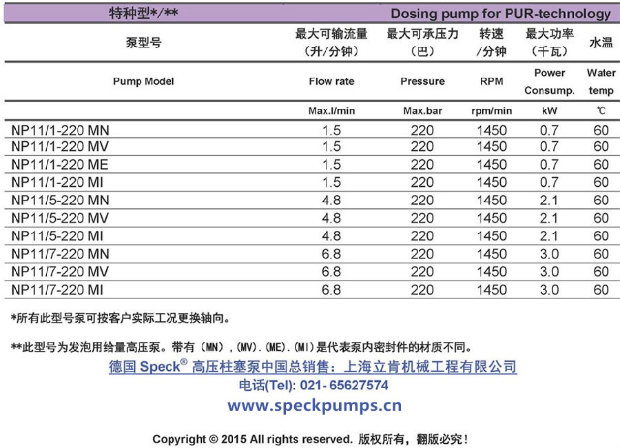 德國speck高壓柱塞泵聚氨酯發泡泵主要用于